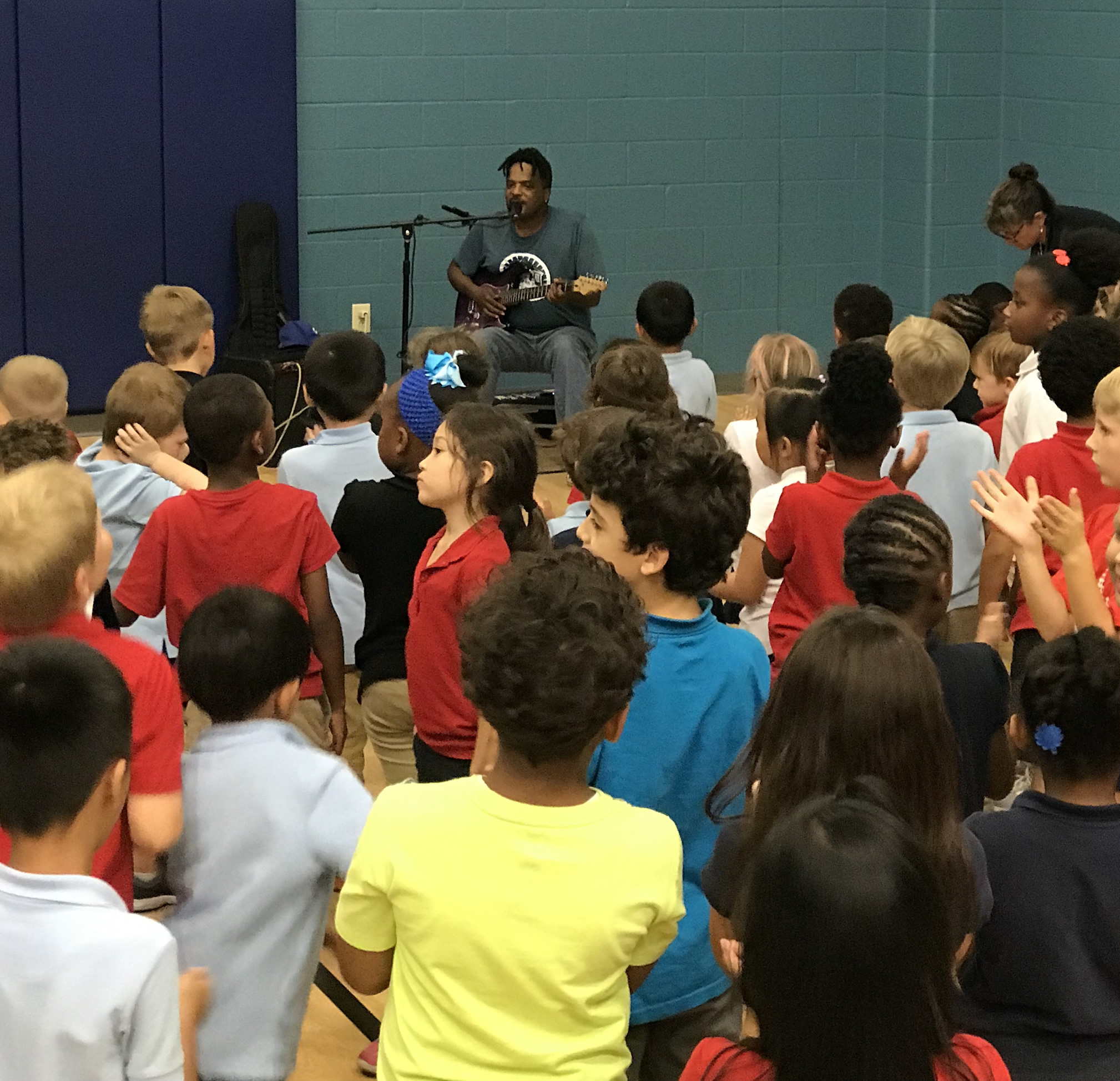 Lawton wrote the original historical narrative and the students were then treated to an age-specific concert of participatory blues genres by Aaron Wilson, Billy Galt, and Jim Pryor.